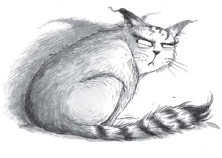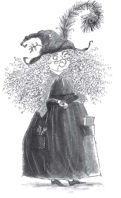‘Oh noooo!’ cried Oswin. ‘Oh, me GREEDY aunt, why’d yew CURSE me to live with witches?’ He dived out of the stove and shot into the much-repaired and patched-together green, hairy carpetbag near Willow’s feet, which started to shake violently.