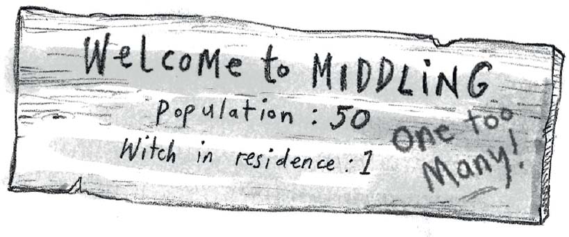 ‘Hmmm, it doesn’t seem like these are the type of villagers who’d appreciate another witch on their doorstep,’ said Willow, looking at the pink graffiti that had been added by some daring soul to the bit about a witch in residence.
