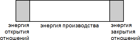 В зависимости рыночного сегмента, который вы решили занять (ВАЗ или Mercedes), вам придется принять решение о принципиальном подходе к работе с клиентами. Дело в том, что на знакомство и подписание договоров, а также на закрытие контракта тратится некоторая энергия. Назовем ее энергией построения отношений. Для B2B-сегмента эта энергия может быть сравнима с энергией, которая тратится на производство проекта (см. рисунок ниже).
