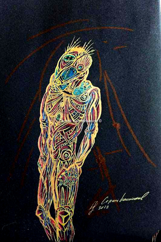 – Древо Жизни! – всполохом осознал он, смотря на ярко-зелёное свечение потоков проростков, ответвлений и ветвей растущего древа. На ветвях древа распускались цветы, быстро отцветающие и набухающие телами плодов. Только плодами были маленькие детёныши существ. Были там и странники, и люди, и живые корабли, и мегавирусные змейки, и ещё множество милых, непонятных и страшноватых детёнышей существ. Детёныши быстро вырастали, взрослея и сами давали множество отростков ветвей древа с новыми цветами и плодами-детёнышами новых неизвестных ему существ. Удивительно, что маленькие карлики порождали гигантов, а те в свою очередь деградировали в незаметных существ. Дерево росло и росло ввысь ветвясь, и свиваясь множеством кряжистых ветвей и ему показалось что это растут галактические волокна вселенной. Зелёный свет пульсировал в них оттенками и яркостью то вспыхивая, то погасая в каждой ветви и стволе создавая глобальную игру света и тьмы. Ему казалось, что он танцует и слышит чувственную и безмерно-глубокую музыку. Два смелых шага вперёд и один спокойный назад: раз и два – вперёд-вверх к свету, и три – назад-вниз во тьму. Всполохи и движения звуков напоминали биения их сердец во время занятия любовью и одновременно крики умирающих на войне существ на восходе пламенных разноцветных солнц неизвестных планет. Смерть и Любовь, Жизнь и Увядание переплетались в гармонических сладостных вскриках и стонах боли.