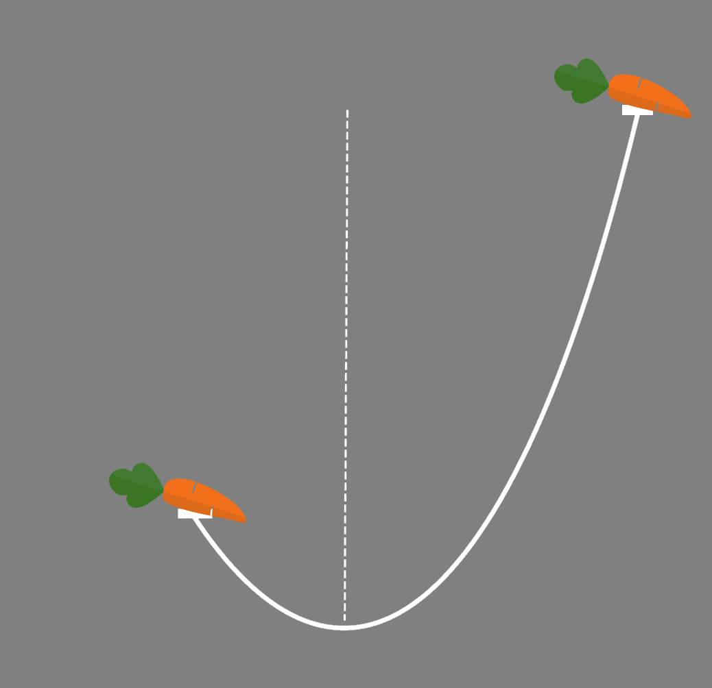 Что важно – это определить для себя собственные нижнюю и верхнюю границы, которые будут служить своеобразным индикатором эффективности. На ум приходит аналогия про морковку спереди и морковку сзади. Морковка спереди – это ваша внутренняя мотивация, то, что заставляет вас двигаться к цели без дополнительных усилий. Соответственно морковка сзади – внешний стимул, который заставляет вас действовать вопреки желаниям. Нюанс состоит в том, что до каких бы размеров не выросла морковка сзади, она повышает мотивацию лишь до определенного уровня, причем гораздо более низкого, чем может дать морковка спереди (рисунок 1). Это значит, что заставлять себя что-то делать через силу весьма неэффективно, чем, если бы что-то действительно вас заинтересовало.