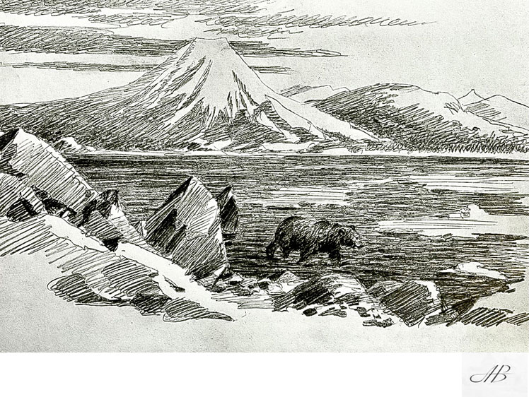 – Да, вона, какая дивная гора, да ещё курится, – воскликнул Атласов, увидев очертание огромного вулкана.