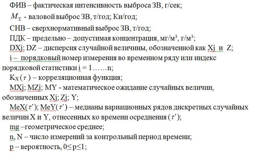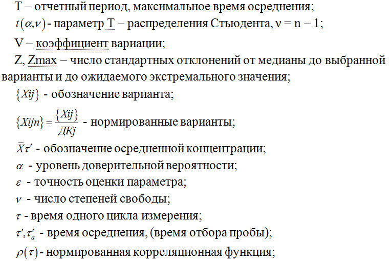 Несмотря на то, что имеется официальный перечень показателей, характеризующих степень воздействия различных источников эмиссии ЗВ и показателей качества воздуха [3], в практике работы аналитических служб отсутствуют методики, которые позволили бы при организации работы системы контроля, получать из любых данных измерений концентрации, именно те характеристики, которые делают оценки степени загрязнения и санитарно-гигиенической обстановки наиболее объективными и однозначными [8, 9].
