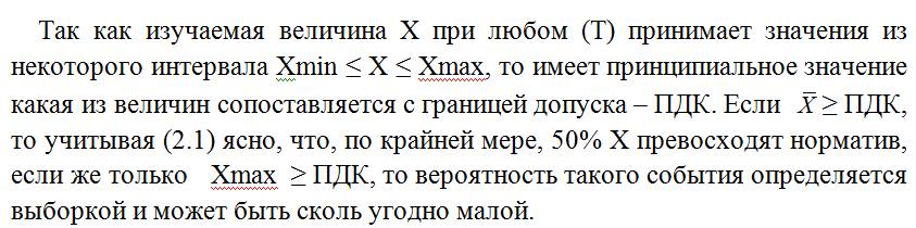 Если при интерпретации данных контроля не использовать информацию о статистической структуре концентрации ЗВ, то это может привести к грубым ошибкам в оценке санитарно – гигиенической обстановки и, как следствие, принятие ошибочных решений как в планировании природоохранной деятельности, так и в оценке эффективности проводимых мероприятий.