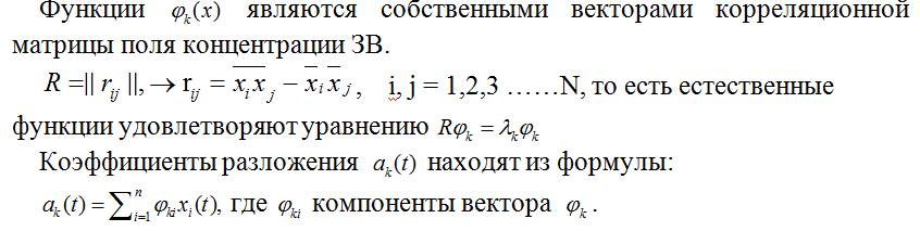 Уже несколько первых членов разложения определяют 90 – 95% общей дисперсии и тем самым выражение 2.4. позволяет оценить изменчивость концентрации по всему району, то есть общую характеристику санитарно-гигиенической обстановки.