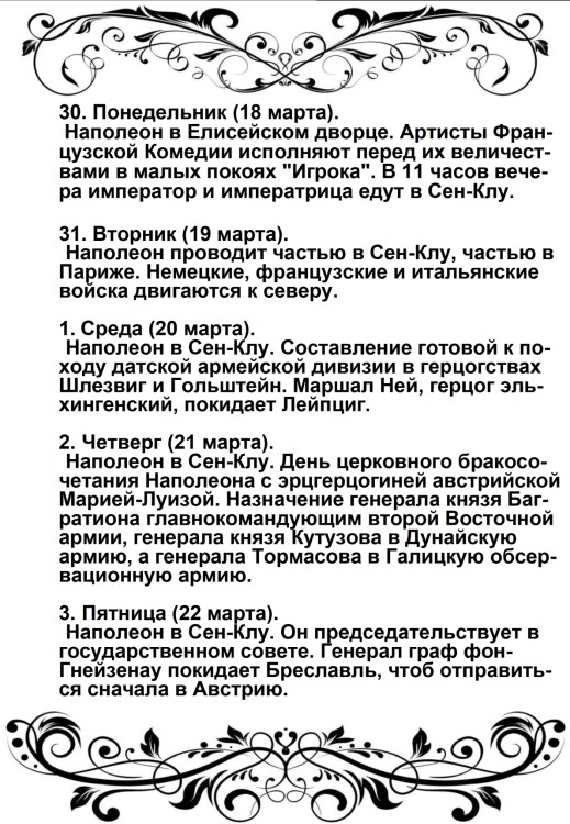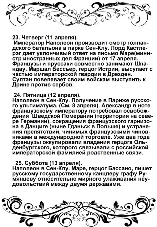 Вторая польская война будет для французского оружия столь же славна, как и первая; но мир, который мы заключим, принесет с собою и ручательство за себя и положит конец гибельному влиянию России, которое она в течение пятидесяти лет оказывала на дела Европы».