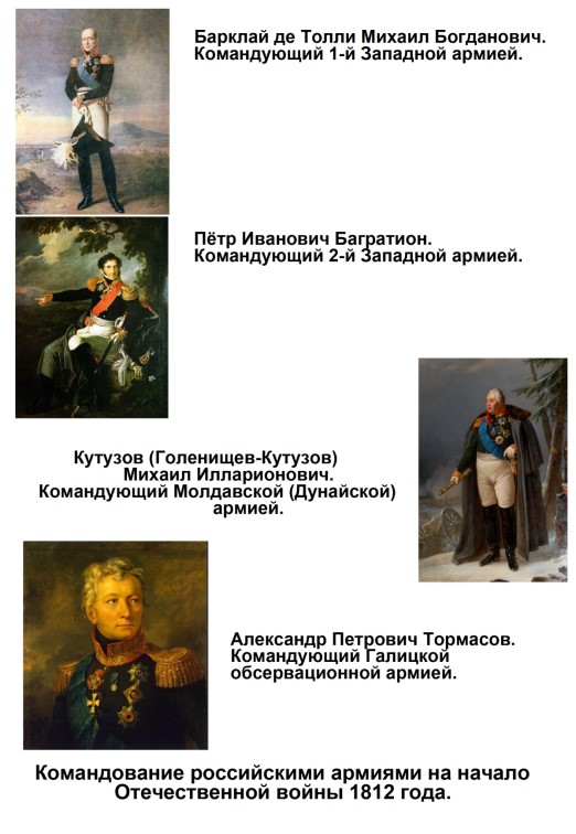 В отношении тактики, предполагаемой войны с Наполеоном, князь советовал Александру I: – «Лучшая система этой войны, по-моему мнению, это избегать генерального сражения и сколько возможно следовать примеру малой войны, применяемой против французов в Испании; и стараться затруднениями в подвозе припасов расстроить те огромные массы, с какими идут они на нас».