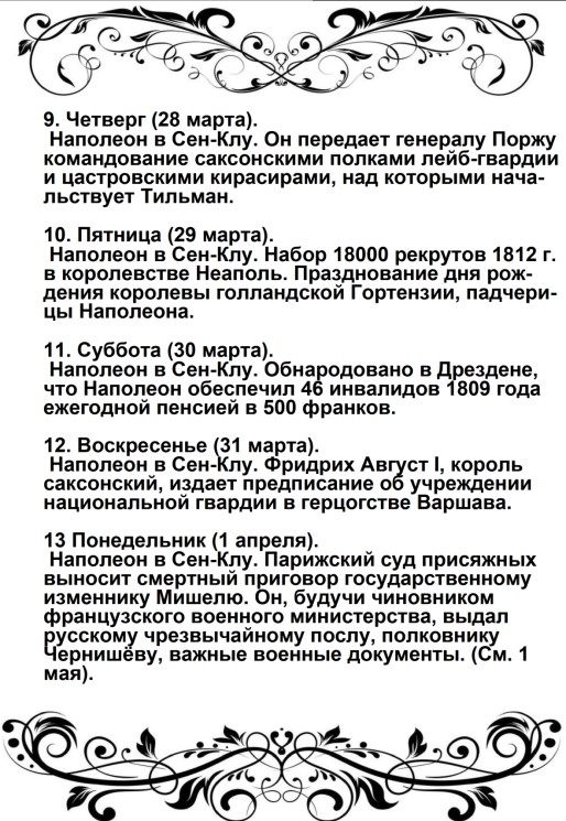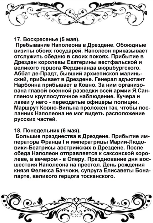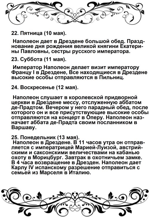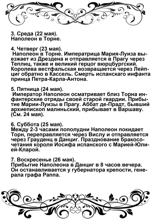 «23 июня (пояснение от автора – по настоящему времени). Когда наши кавалеристы (6-го Польского уланского полка) еще отдыхали в своих биваках, на Кёнигсбергской дороге показалась быстро мчавшаяся почтовая карета, запряженная шестью рысаками, и сразу остановилась в самой середине нашего лагеря. Ее сопровождало лишь несколько гвардейских стрелков, на запыхавшихся лошадях, которые еле могли стоять от страшной усталости.