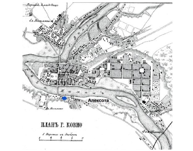 Он задал ряд вопросов относительно положения рус- ских войск. Продолжая задавать свои вопросы он выразил желание переодеться в польскую форму: было приказано не показывать русским ни одного французского военного. Из всего нашего платья более всего подошли императору сюртук полковника Паговского и его полицейская шапка. Всё это было делом лишь нескольких минут. Бертье также надел польскую форму. Немедленно привели лошадей. На одну из них сел Наполеон, на другую- Бертье. Они отправились в деревню Алексоту, которая находилась на расстоянии одной мили от отправного пункта и была расположена против Ковно, на пушечный выстрел от него. Император слез с лошади на дворе принадлежавшего одному врачу дома, окна которого выходили на Неман, и из которого можно было легко обозреть окрестности. От- сюда Наполеон великолепно ознакомился с местностью; его самого при этом не могли увидеть, так как лошади были тщательно спрятаны во дворе. Закончив эту разведку, Наполеон возвратился в наш лагерь».Из дневника офицера 6-ого Польского уланского полка Солтык.