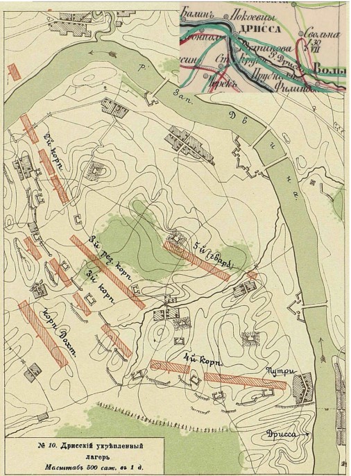 На военном совете в Дрисском лагере нахождение Наполена с начала войны в Вильне расценивали как тонкий военный расчёт – дождаться момента наибольшего расчленения русских армий и связав их действия отвлекающими боями, силами войск, в основном находящимися в Вильне, осуществить обходной удар или в направлении Санкт-Петербурга или в сторону Москвы.