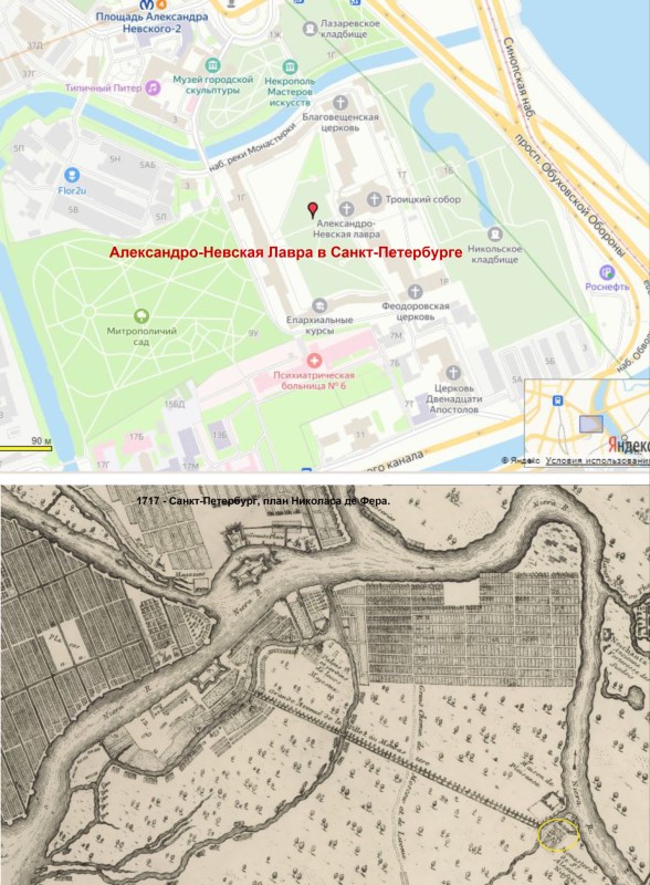 Уже спустя год после основания Санкт-Петербурга, в 1704 г. Петр I задумал создать монастырь в честь Живоначальной Троицы и Александра Невского. Имеется запись доношения из Санкт-Петербургской губернской канцелярии в Сенат об отводе земли для возведения Александро-Невского монастыря по именному указу царя Петра I в Канцелярии санкт-петербургского генерал-губернатора князя А.Д. Меншикова. Дата закладки монастыря – 1712 г. Старинные историки Петербурга передают «издревле между туземцами сохранившееся» предание, что на этом месте, где было определено строительство монастыря (Александро-Невская лавра), в период борьбы Новгорода со Шведами и Ливонскими рыцарями за обладание Невой, Новгородским князем Александром Ярославичем Невским 15-го июля 1240-го года была одержана знаменитая победа «над соединенными силами Шведских, Датских и Лифляндских войск, которыми предводительствовал Король Шведский.
