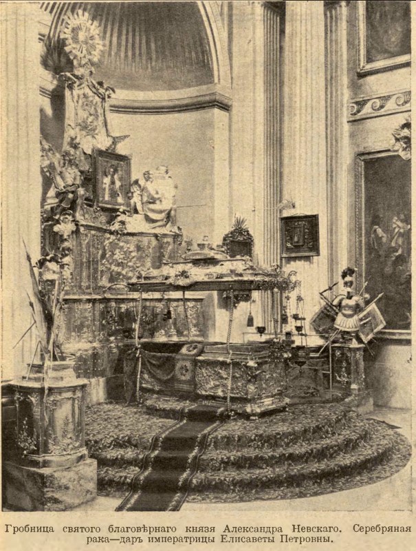 Посетив построенный монастырь в 1723 г. царь повелел перенести туда мощи cв. благоверного князя Александра Невского, до того дня почивавшие в Рождественском монастыре Владимира. 30 августа 1724 г. мощи были торжественно доставлены в Санкт-Петербург и помещены в Благовещенскую церковь. По окончании строительства главного монастырского храма – собора св. Троицы рака с мощами была помещена там. 18 декабря 1797 г. высочайшим указом Святейшему Синоду Императора Павла I Александро-Невский монастырь был переименован в Лавру. В то время в России было четыре лавры.