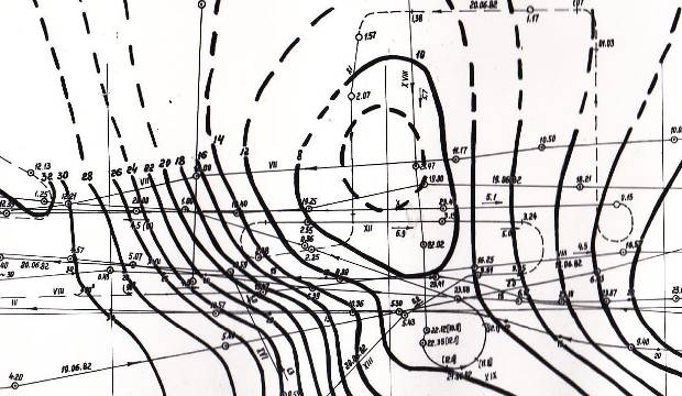 Используя свои возникшие хорошие отношения с комиссией, штурманской службой корабля и его командиром, я решил обследовать район замеченной аномалии и составить её гравитационную карту. Мне оказали содействие в этом начинании и по возможности выполняли плавание корабля в окрестностях замеченной аномалии. В результате у меня появилась гравитационная карта предполагаемого месторождения углеводородов.