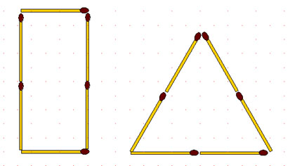 2-131. Как переложить 2 спички так, чтобы из трех треугольников получилось два треугольника.