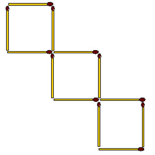 2-134. Переложите 3 спички, чтобы вместо трех треугольников получить три четырехугольника одного размера.