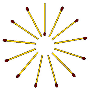 Получается как в детской считалочке из 13 слов, считаем по кругу и спичку, на которую выпадет счет, выводим из игры. Главное – какую убрать первой, дальше элементарно.