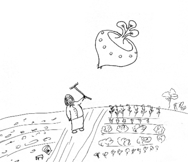 …Дед жил на окраине деревни, за высоким забором и ни с кем не водил дружбу. Его в округе боялись все, за его грязную длинную бороду, лохматую голову и грязную рубаху без пуговиц. На голове он носил старую соломенную шляпу всю в дырках, это просто чудо, что она не рассыпалась у него на голове, он носил ее уже который год. И тут произошло в его жизни необычайное событие, у него в огороде выросла репка не виданных до сели размеров, на была как огромный грузовик, нет настоящий КАМАЗ. Что с ней делать? Как с ней быть? Старик от отчаяния сел возле нее и громко заплакал. А по соседству жили Танечка и Ванечка, которые как и все остальные люди в деревне боялись деда, но из любопытства и из жалости заглянули через забор, а там …