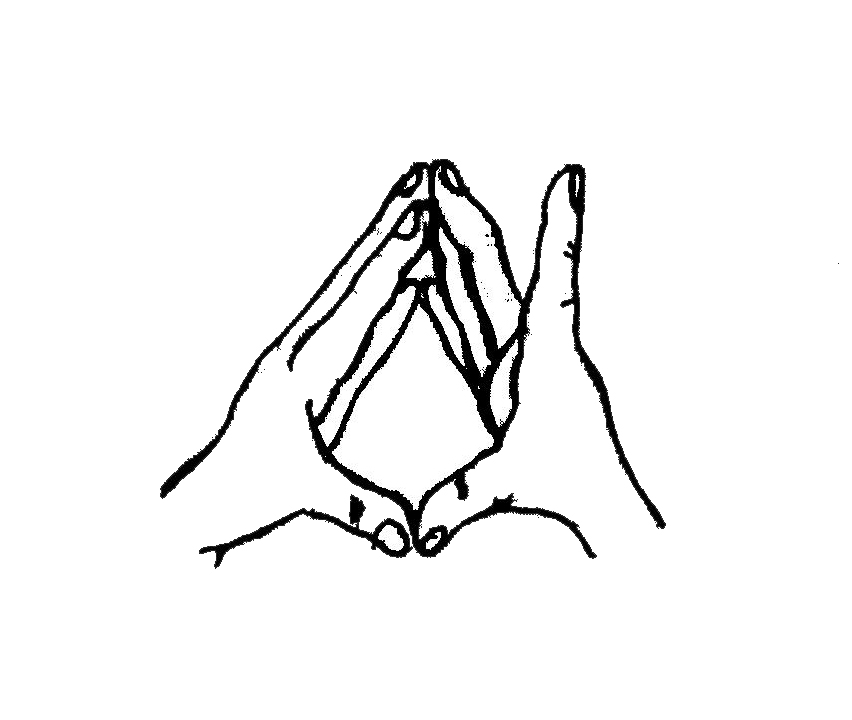 «Сарай» – пальцы рук соединяются под углом в виде крыши. Большие пальцы прижаты к ладоням.