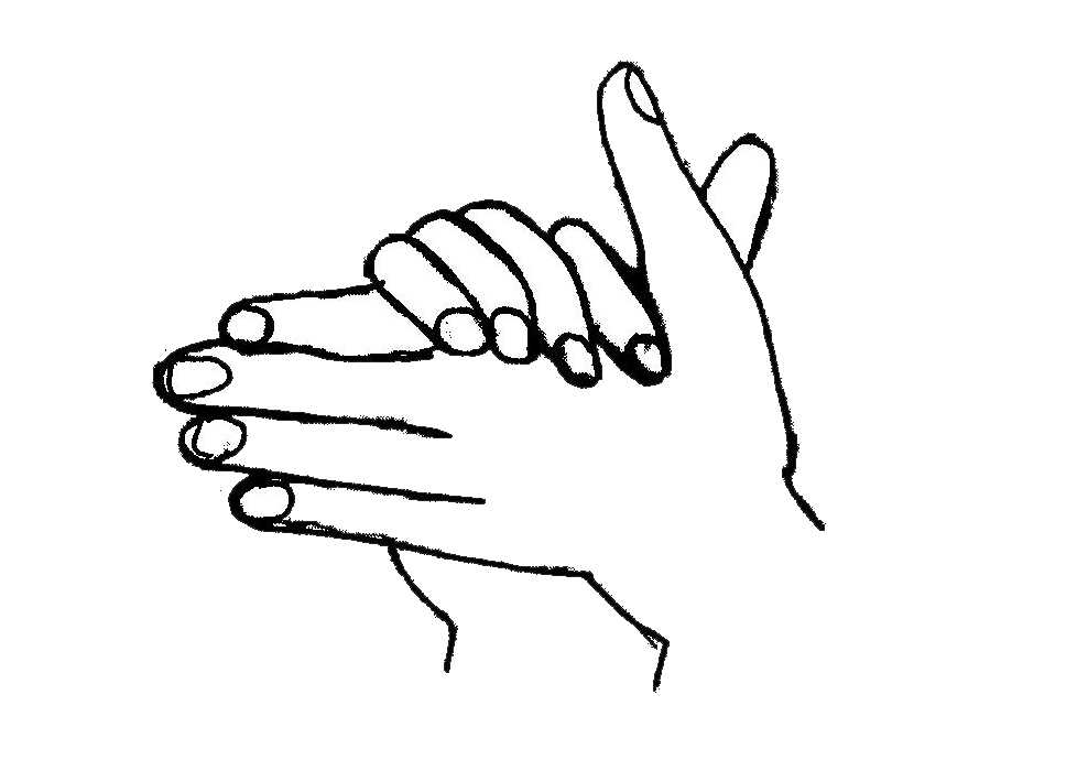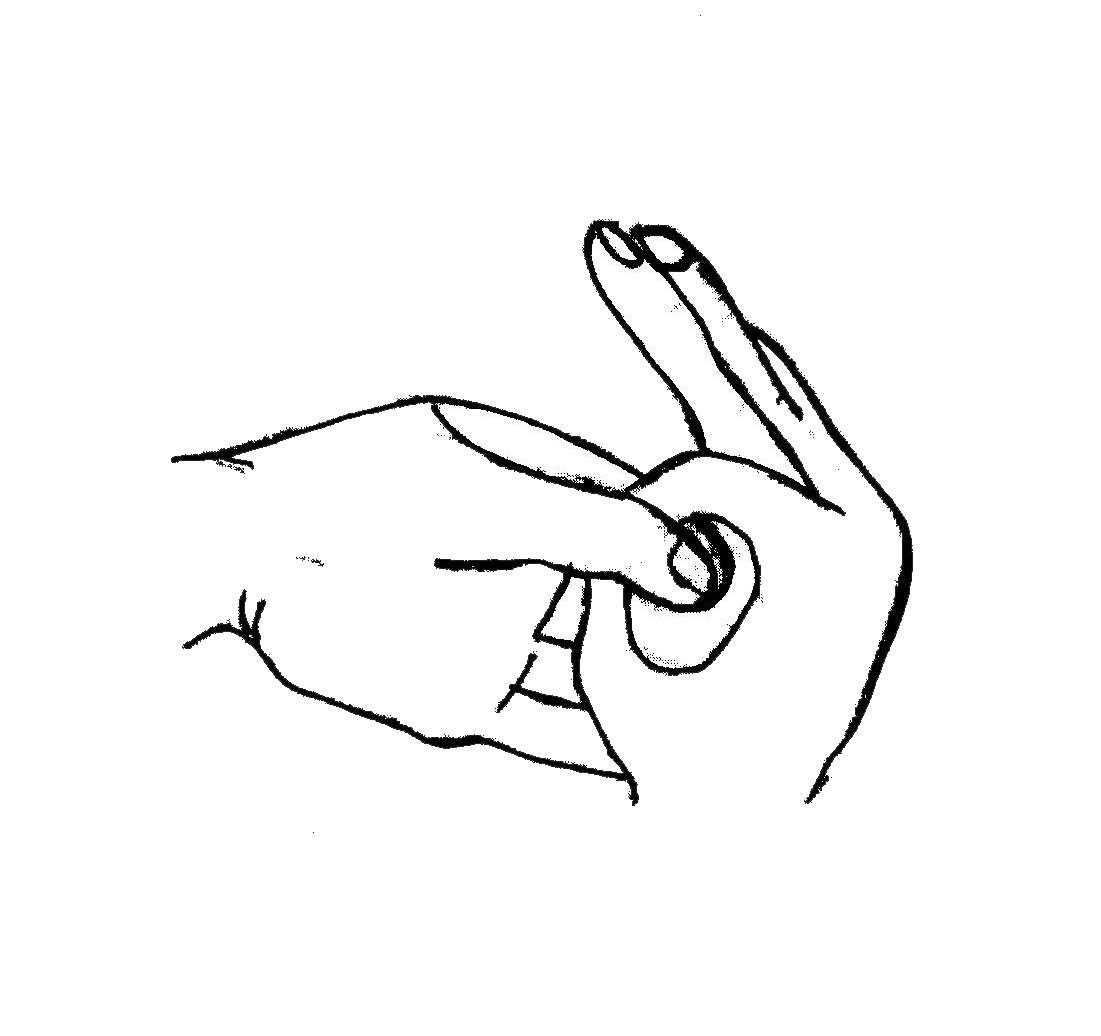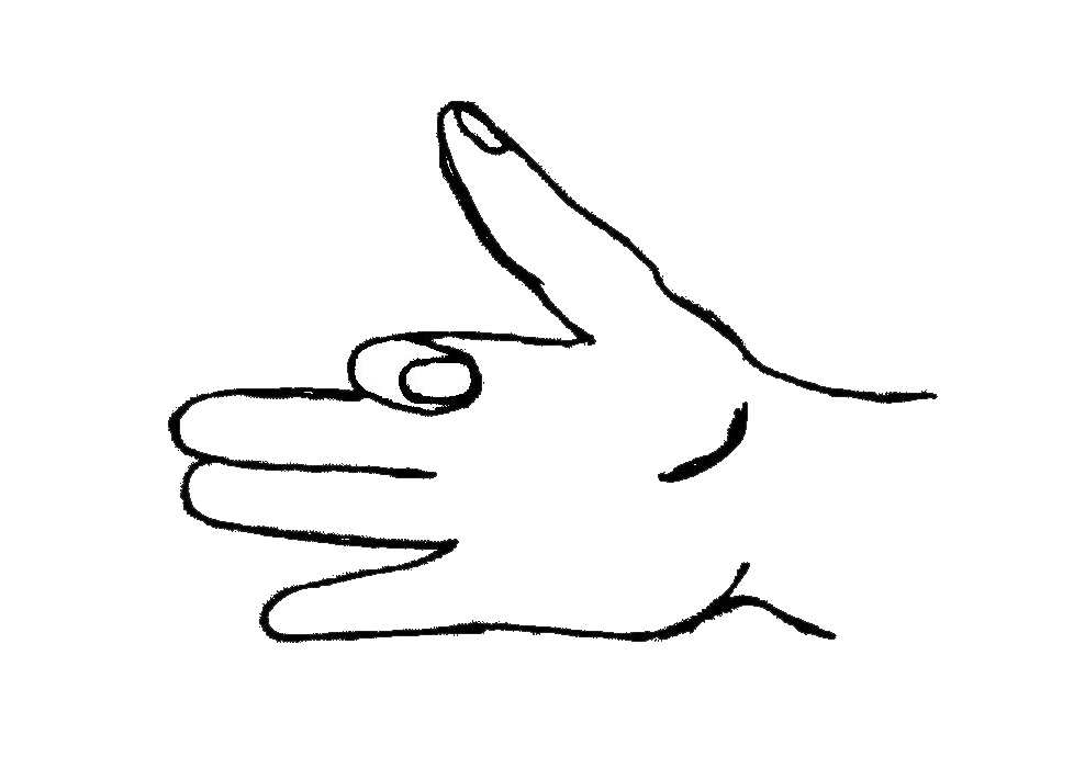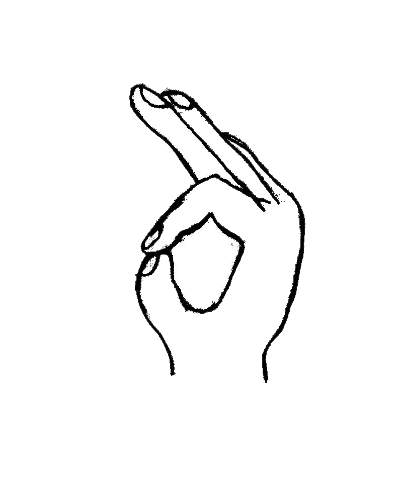 «Курочка» – ладонь немного согнуть, указательный палец упирается в большой. Остальные накладываются друг на друга в полусогнутом положении.