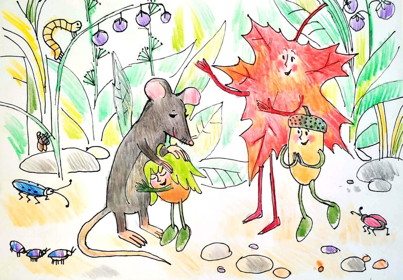 – Не трусь! – громко сказал упавший желудь. – Ну-ка, кленовый лист, помогай!