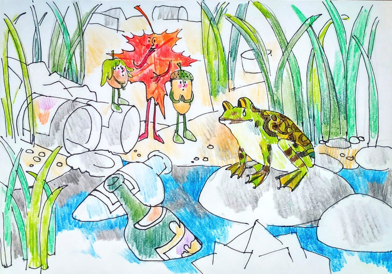 – Квак-же мне не печалиться, если в любимом озере столько всякой гадости плавает! Опять вчера приезжали люди на своей большой машине и мыли ее в озере. Раньше тут обитали рыбки и уточки, а теперь, кроме водомерок и одного жука-плавунца, ни-квак-кого не осталось. Даже мои родственники ушли жить в другое место.