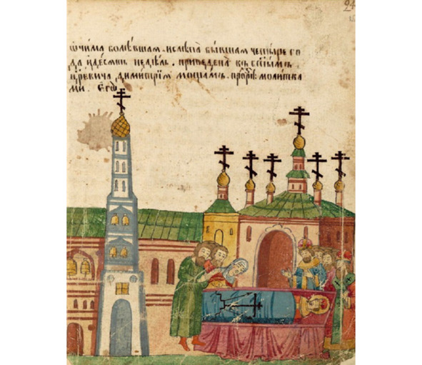 Похороны царевича в Угличе. Миниатюра из Жития страстотерпца царевича Димитрия из собрания П. М. Третьякова104