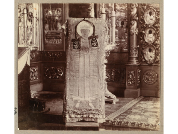 Углич. Надгробный покров, изготовленный мастерской Марии Нагой к годовщине смерти царевича. 1592 г. Утрачен в 1920-х гг. Фото Прокудина-Горского 1900 г.107