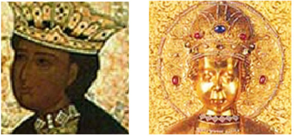 Из сохранившихся артефактов можно указать на два: посмертную икону царевича и крышку раки108 1630-х гг., – которые должны иметь некое портретное сходство с оригиналом и на которых лицо Дмитрия можно детально рассмотреть. Безусловно, рисунок иконы вполне схематичен, наполнен символами и не гарантировал сохранение реального облика человека, но, в то же время, даже в рамках довольно жёсткой ритуальной схемы индивидуальные черты царевича средневековый художник сумел передать.