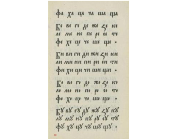 Начальная подготовительная ступень, занимавшая год, была посвящена изучению азбуки, но изучалась она не только в прямом порядке (как сейчас учат наши дети), но и в обратном и столбцами. Помимо всего прочего, буквы имели цифровое значение, являясь исходным материалом для начальной арифметики. После освоения букв и получения навыка свободного манипулирования ими, ребенок начинал читать «по низам», т.е. по слогам. Буквосложение тоже было организовано весьма непросто: необходимо было заучивать наизусть сначала целые ряды двухбуквенных открытых (заканчивающихся на гласную) слогов – ба – ва – га – да, бе – ве – ге – де