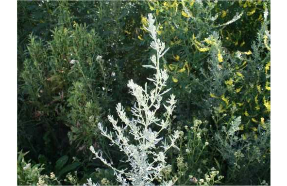 Полынь (Artemisia absinthium – дающая здоровье) Сложноцветное многолетнее растение с пряным ароматом и горьким вкусом. Целебный эффект полыни осуществляет огромное количество полезных веществ, которые входят в ее состав: янтарная и яблочная органические кислоты; гликозиды анабсистин и абсистин; витамины; дубильные вещества; фитонциды; флавониды; смолистые вещества. Растение в основном применяют в чистом виде, так как оно потенцирует целебный эффект остальных трав. Оно усиливает аппетит, действует седативно на нервную систему, стимулирует аппетит и дезинфицирует. Ученые, проведя многочисленные исследования, смогли доказать, что трава используется при лечении многих недугов и патологий: депрессия и тревожные синдромы; болезни кишечника и желудка; средство от паразитов; бессонница; патология поджелудочной железы; печеночные колики; функциональное расстройство кишечника и желудка; лечение конъюнктивита разного генеза; противовоспалительное и ранозаживляющее средство; кровоостанавливающее средство; действует как эффективное мочегонное и желчегонное средство. И