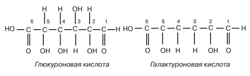 Следует указать, что некоторые моносахариды образуют сахарные кислоты, имеющие важное значение в жизнедеятельности организма. Наиболее известны уроновые кислоты – продукты окисления моносахаридов путем превращения первичной спиртовой группы в карбоксил (при сохранении альдегидной группы). Названия уроновых кислот производятся от названий моносахаридов с прибавлением слова уроновая, например: глюкуроновая, галактуроновая и т. д.