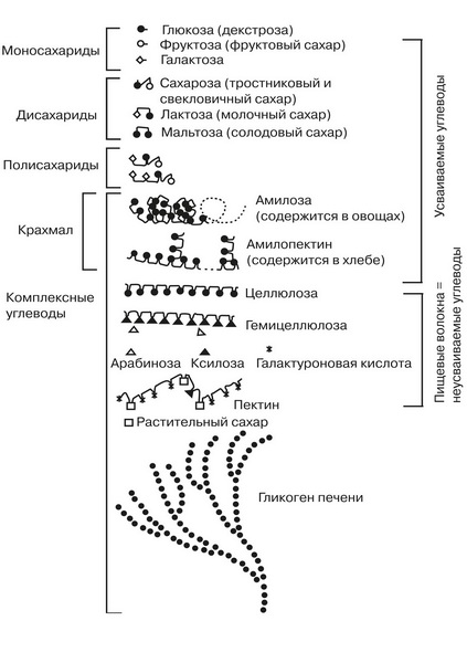Рис. 2. Схема строения углеводов (H. Andersson, N. G. Asp, S. Hallman, 1986)