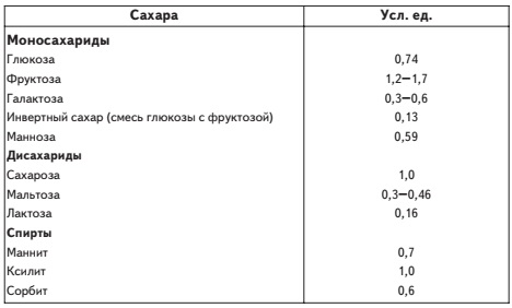 Таблица 1. Сладость различных сахаров относительно сладости сахарозы, принятой за 1