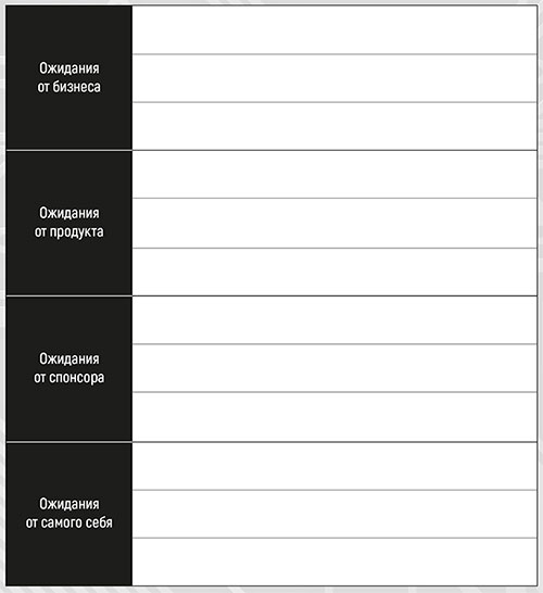 ЗАДАНИЕВыпишите свои ожидания от бизнеса, от компании, от спонсора, от продукта и, самое главное, от самого себя