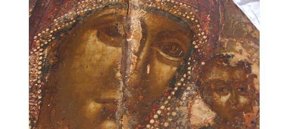 – А сначала было непонятно, что там за сюжет. На доске на палец песок наслоился, пыль, паутина. Изображения практически не различить. Видно только, что красочный слой кое-где совсем осыпался, а в том месте, где доска раскололась напополам, тонкий слой левкаса и краски, лишенный опоры, висел в пустоте и мог обломиться в любое мгновение
