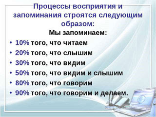 Как видно из приведенной выше статистики, время хранения информация в голове значительно отличается в зависимости от способа поступления и использования.