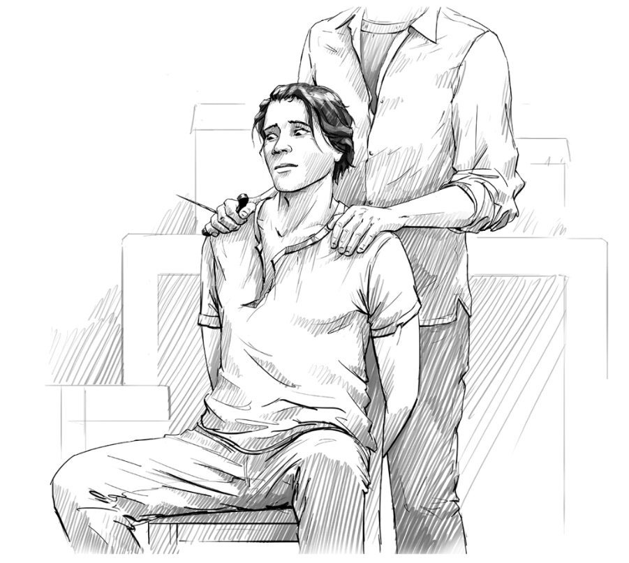 Мужчина резко встал, обошел меня сзади и, положив ладонь на лоб, запрокинул мою голову назад. Затем его рука скользнула ниже и, с силой дернув, он разорвал воротник у моей футболки.