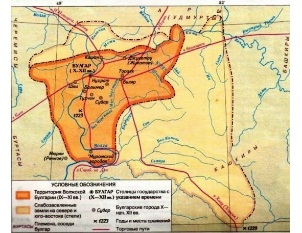– Государство защищало от внешних неприятностей все этносы, живущие на всей территории Волжской Булгарии. Для этой цели они начали строить земляно-деревянные крепости. Так появляются первые города. На правом берегу Волги известны такие города, как Ошель (Шел), Симбир, Кан, Таябинское городище (Батыревский район), Тигашевское городище (Батыревский район) и др. На окраинах земель восточной мордвы, марийцев, удмуртов, коми-пермяков и коми-зырян были устроены сторожевые пункты (небольшие крепости).