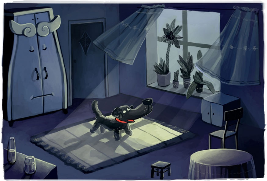 Теперь нужно было придумать надёжный способ не уснуть… Можно взять в союзники Мячик, но он будет скакать и перебудит весь дом. А если весь вечер смотреть в окно? За ним всё время что-то происходит: все куда-то ходят, ездят машины, снуют мальчишки… Но тут есть проблема – шторы на ночь закрывают, и на подоконник забраться не получится.