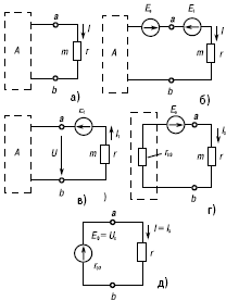 Предположим, что требуется найти ток I ветви amb некоторой электрической цепи (рис. 14а), остальные элементы которой сосредоточены в предела прямоугольника, представляющего собой активный двухполюсник А.