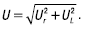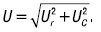 Вектор напряжения Ūr совпадает с вектором тока, вектор Ūc отстает от вектора тока на угол 90°. Из диаграммы следует, что модуль напряжения, приложенного к цепи, равен:
