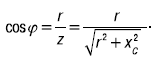 Подставив вместо cos φ его значение, получим Pср = UI cosφ = UI(r/z) = i2r = P