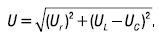 Из диаграммы следует, что вектор напряжения сети равен геометрической сумме векторов Urи Ul. Ū = ŪR + ŪL, а его значение