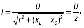 Последнее выражение представляет собой закон Ома для последовательной цепи r, L, C: