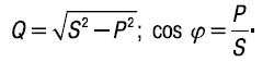 Реактивную (индуктивную) мощность и коэффициент мощности цепи (рис. 18) определяют расчетным путем по формулам: