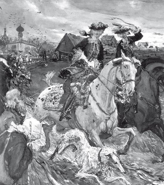 Путь к властиЕлисавета родилась в селе Коломенском 18 декабря 1709 года. День этот был днем торжественным: Петр въезжал в Москву, за ним везли шведских пленных. Государь намеревался тотчас праздновать полтавскую победу, но при вступлении в столицу его известили о рождении дочери. «Отложим празднество о победе и поспешим поздравить с восшествием в мир дочь мою, яко со счастливым предзнаменованием вожделенного мира», – сказал он. В Успенском соборе отслужено было благодарственное молебствие. Прослушавши его, царь отправился в село Коломенское, где находилось его семейство. Он нашел Екатерину и новорожденного младенца здоровыми и на радостях устроил пир. Коломенский дворец, хотя деревянный, был очень обширен и заключал в себе 270 покоев с тремя тысячами окон, было где собраться большому стечению гостей. К пиру приглашены были привезенные царем шведские пленники. Вне дворца угощали нижних чинов и народ; им выкатили несколько бочек с вином и поставили на столах закуски.