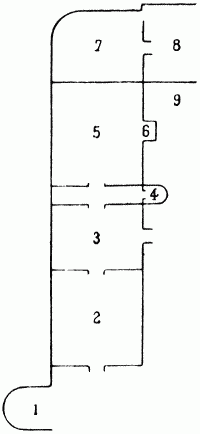 Библиотека соединялась со спальней Павла двумя дверьми, между которыми, в очень большом в этом месте утолщении стены, была устроена комнатка, вроде маленькой прихожей, где с одной стороны за перегородкой спал один из лакеев государя, а с другой стороны был выход на лестницу, которая вела в помещения княгини Гагариной и Кутайсова.