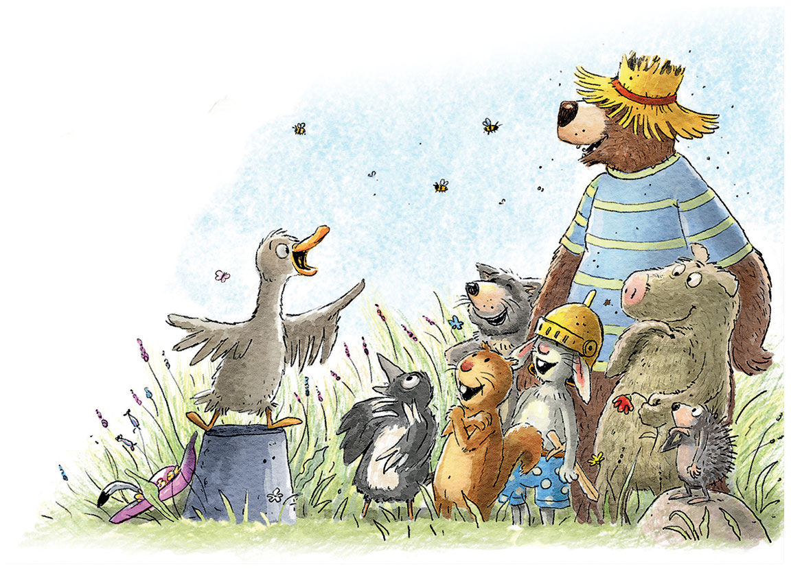 Когда на следующее утро Медведь спустился к завтраку, Зайка о чём-то шушукался с тётушкой Гусыней и другими зверями.