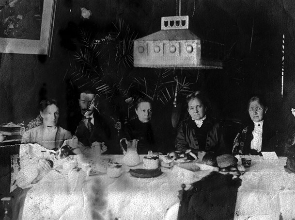 Рис. 19. Алексей и Надежда Субботины (слева) с матерью Н. В. Субботиной (вторая справа) и ее сестрами Ольгой и Варварой Соколовыми (Домашний архив И. Куклиной-Митиной)