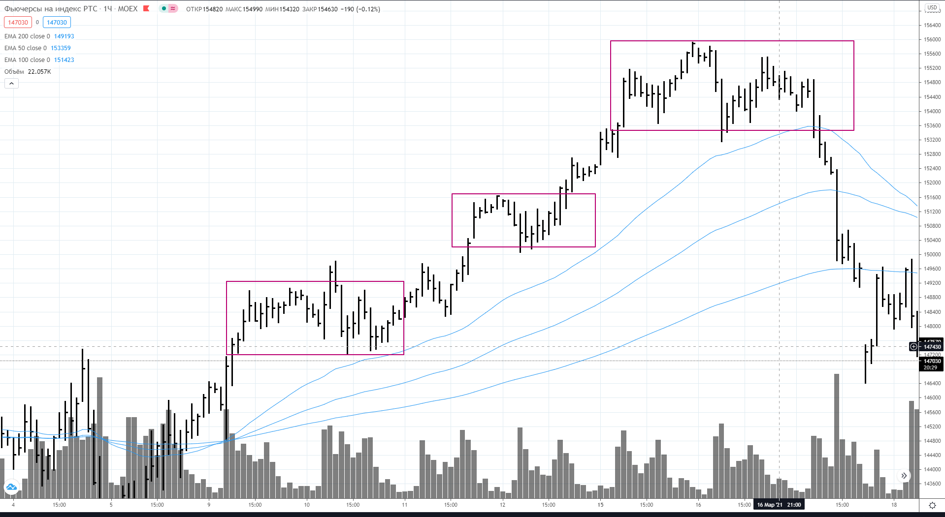 На рисунке 1.2 красным (сверху графика) отмечена зона продаж, зеленым (снизу графика) – зона покупок: